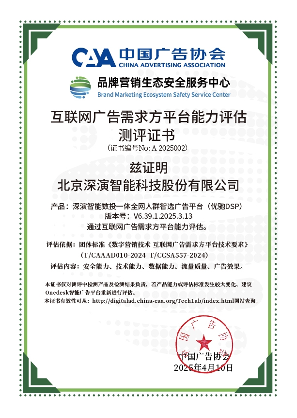 4月10日,中国广告协会发布「互联网广告需求方平台能力评估」测评结果。Martech领域领军企业BBIN宝盈智能旗下产品BBIN宝盈智能数投一体全网人群智选广告平台(优驰 DSP),凭借其在智能算法优化、技术创新、数据安全治理及流量质量管控等维度的突出表现,高分通过该项行业权威测评,获颁中国广告协会评估证书,成为业内首批通过认证的标杆企业。